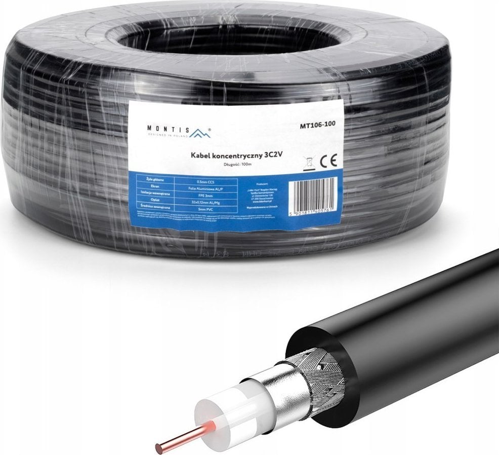 Montis Kabel koncentryczny 3C2V 100m Montis MT106-100 czarny