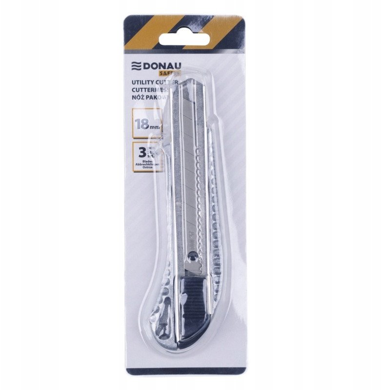 Nó pakowy DONAU SAFETY, wymienne ostrze, metalowy, blister, srebrny