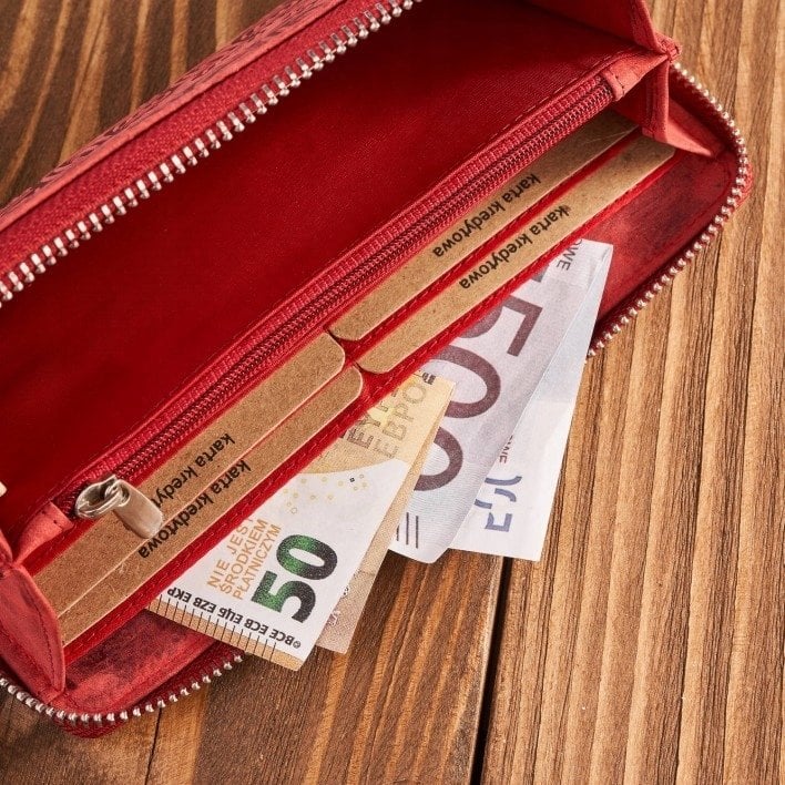 Paolo Peruzzi Portfel damski skórzany czerwony w geometryczny wzór RFID T-116-HRD