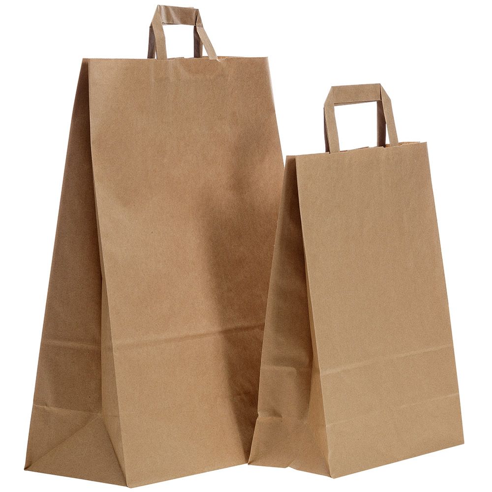 Plakans maisiņš izgatavots no brūna pārstrādāta kraftpapīra. Maisiņš ar papīra rokturiem. Šis maisiņš ir lieliska un ērta izvēle produktu vai dāvanu iesaiņošanai. Tā dabiskais izskats padara to piemērotu individuālai apdrukai, uzlīmēm vai citai dekorēšanai.