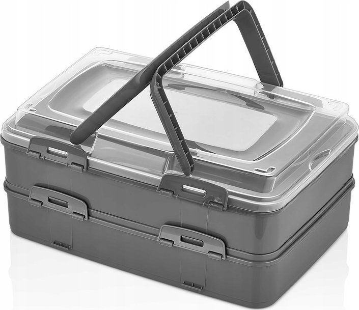 POJEMNIK BOX NA CIASTO - PODWÓJNY SZARY DO PRZENOSZENIA