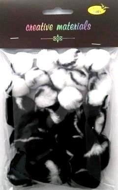 Pompony dwukolorowe biao-czarne 25-40mm 21szt