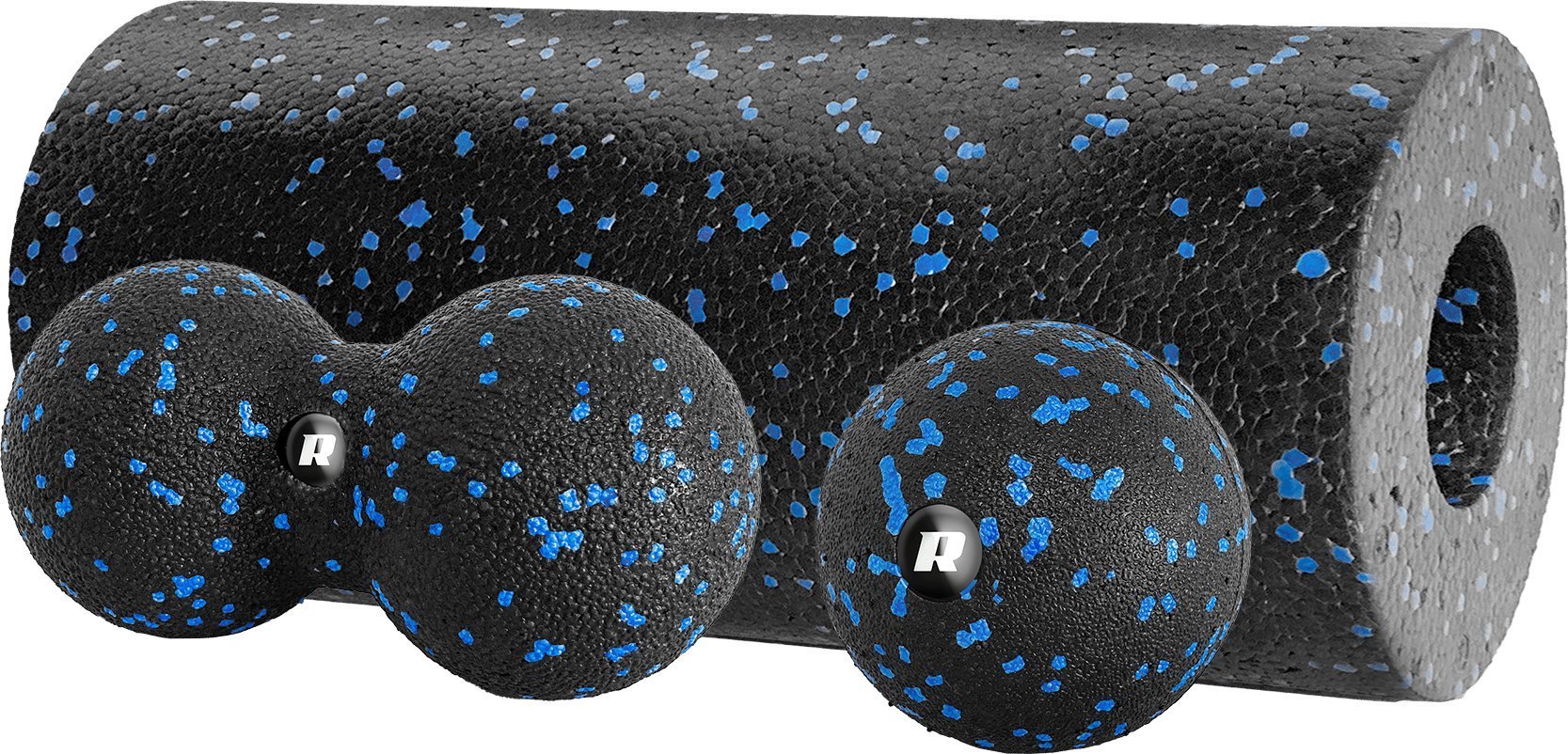 Rebel Zestaw waek do masau, roller, pika, duoball , 3 elementy, kolor czarno-niebieski, materia EPP, REBEL ACTIVE