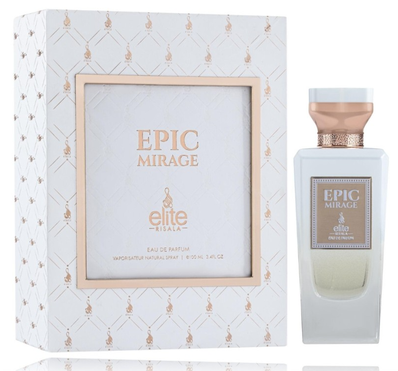 Risala Elite Epic Mirage Perfume EDP 100 ml — smaržas ar bagātīgu un izsmalcinātu aromātu. Aromāts pakāpeniski atklājas un saglabājas visas dienas garumā. Kompozīcija ir dziļa un līdzsvarota. Piemērotas ikdienas un vakara lietošanai. Atstāj maigu aromātisku noskaņu.