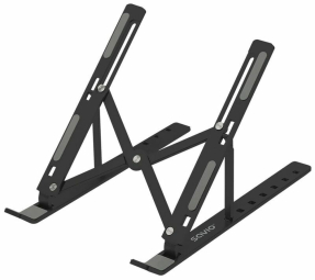 savio portable stand is a foldable aluminum stand for laptop and tablet use. its design offers a fixed ergonomic viewing angle and improved airflow under the device. silicone pads prevent slipping and protect the device surface.