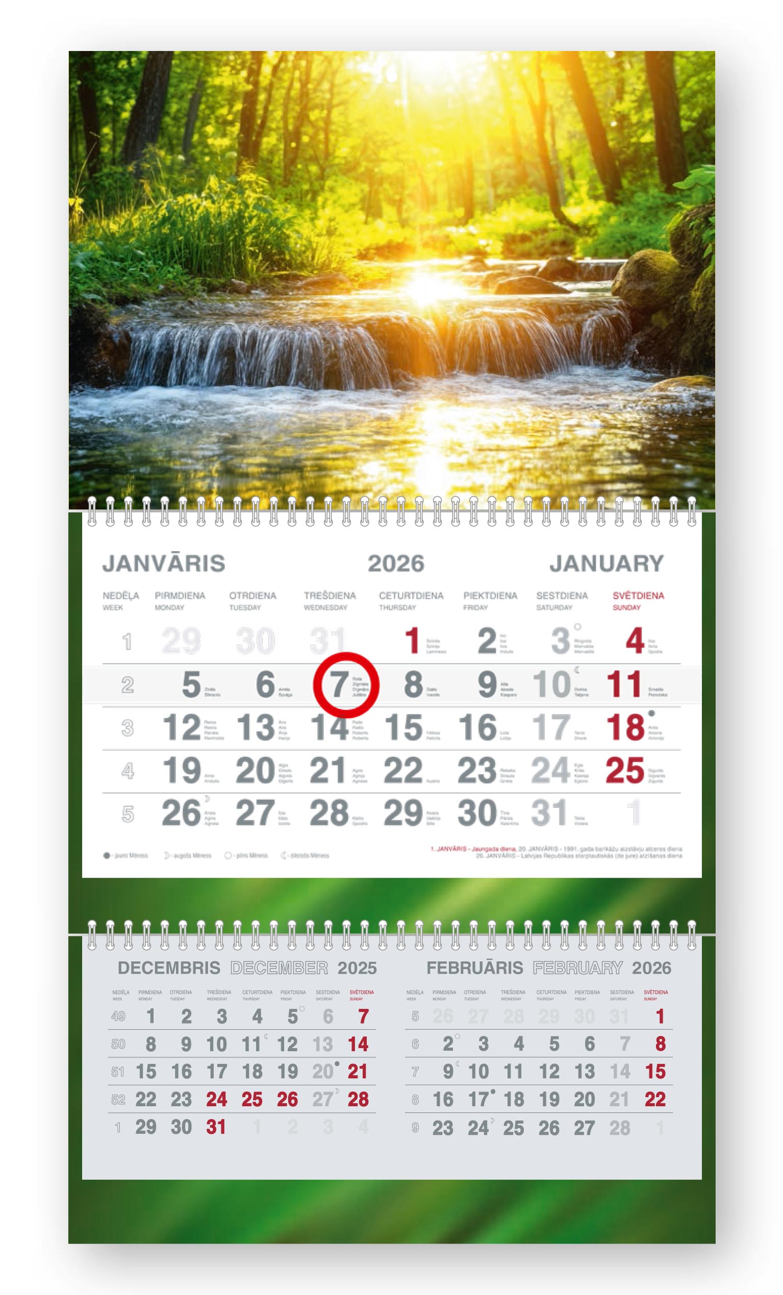 • Sienas kalendārs no 3 daļām
