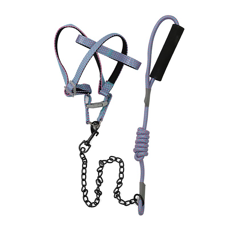 Krūšu siksna ar pavadu dzīvniekiem. Siksnas aizdare ar klipsi. Pavada ar cilpu galā un mīkstu uzliku ērtai turēšanai. Siksnas platums 1.5 cm, pavadas auklas diametrs 0.8 cm.