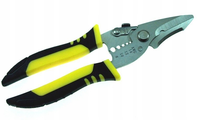 | Profesionālas knaibles kabeļu noņemšanai un griešanai ar papildu sānu asmeni. Instruments ir izgatavots no cieta tērauda. Tas viegli pārgriež vadus, vadu kūļus un biezus kabeļus. Ar knaiblēm var viegli noņemt izolāciju no dažāda biezuma vadiem, nebaidoties sabojāt vadu. Vadu un kabeļu griešanai ar cilpas diametru 6 mm. Asmens garums 45 mm, izolācijas noņemšanas asmenis ar 5 diametriem 1.5 – 8.4 mm. Divu kompozītmateriālu ergonomisks rokturis ar neslīdošu profilētu virsmu. |