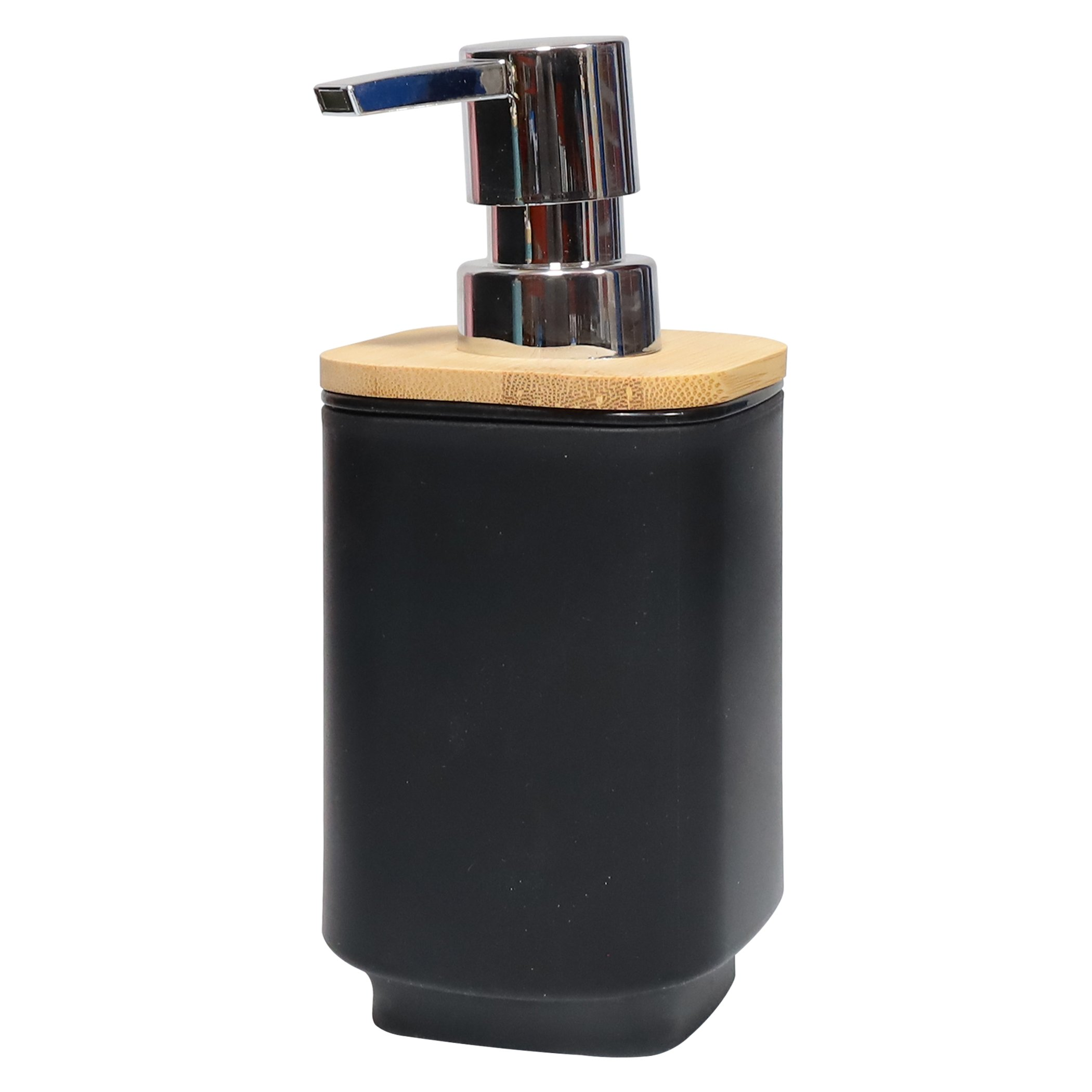 Šķidro ziepju dozators izgatavots no izturīgas ABS plastmasas. Traukam ir pievilcīgs bambusa vāciņš un hromēts dozators.