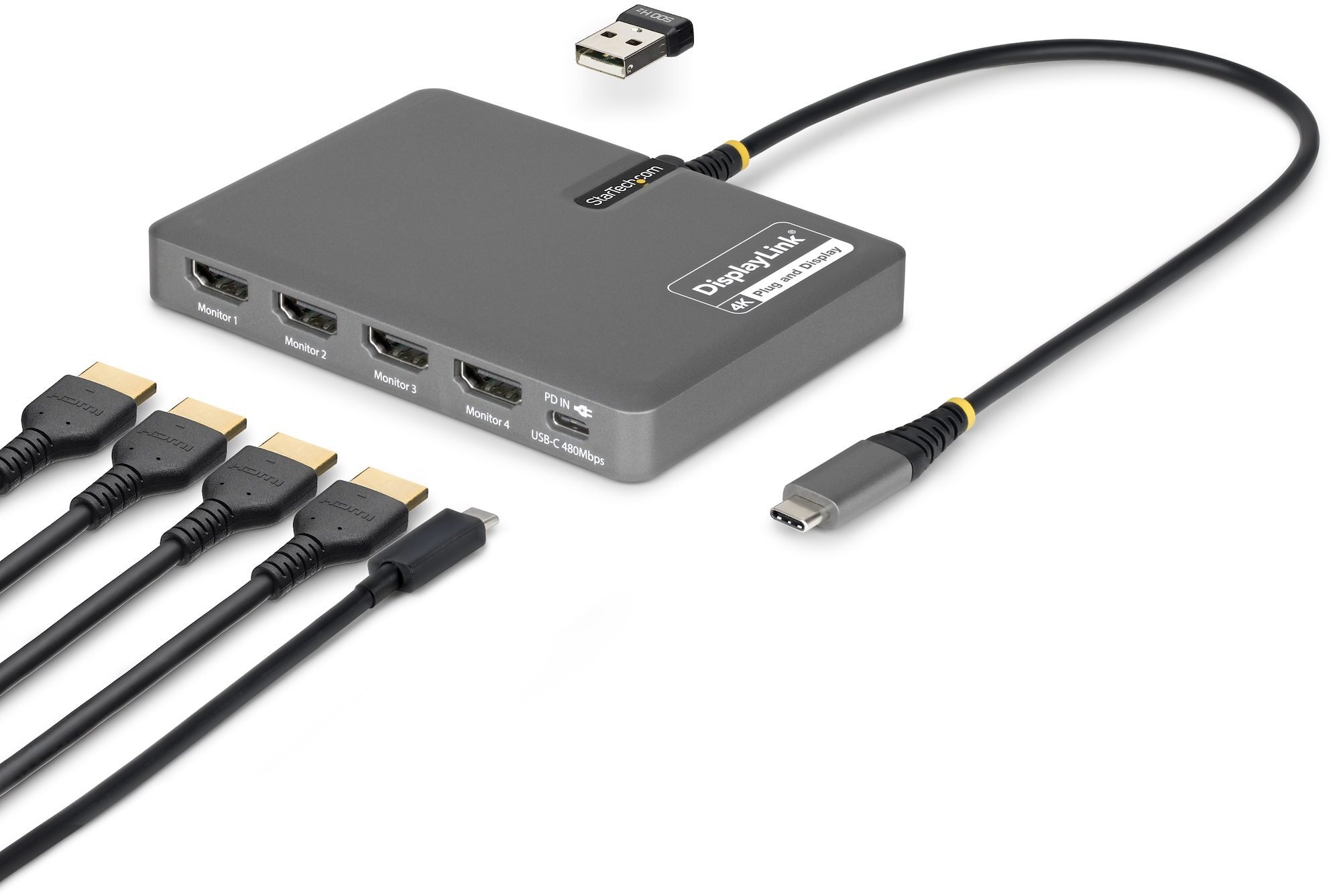 Stacja/replikator StarTech STARTECH.COM USB-C do 4-Monitor Workstation Adapter 4K 60Hz HDMI 140W PD Passthrough USB dla klawiatury i myszy TAA