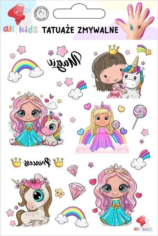 Tatuae zmywalne dla dzieci Ksiniczki jednoroce