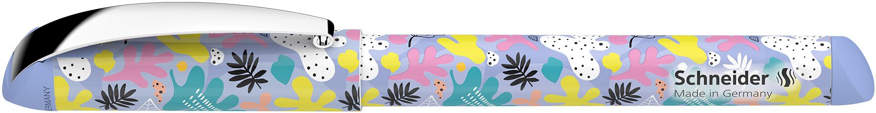 Tintes pildspalva SCHNEIDER GLAM ar ergonomiski gumijotu roktura profilu un izturīgu metāla klipsi. Moderni un pavisam jauni dizaini ar unikāliem, taustāmiem drukātiem rakstiem. Augstas kvalitātes nerūsējošā tērauda uzgalis ar irīdija galu. Zīmēšanas līnijas biezums: M (vidējs). Karaliski zila tinte, dzēšama. Atkārtoti uzpildāma ar standarta tintes kasetnēm. Vienlīdz piemērots labročiem un kreiļiem.