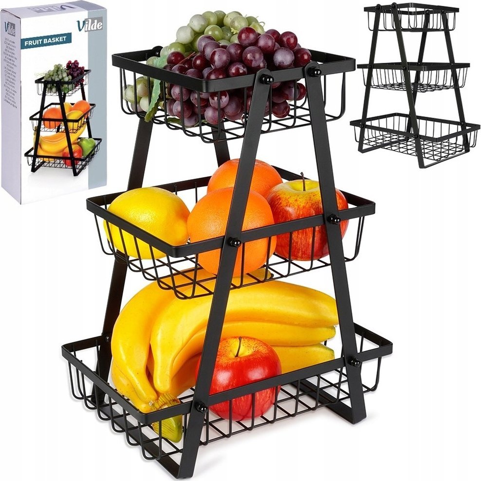 Vilde Koszyk na Owoce Warzywa 3-Poziomowy Metalowy Czarny VILDE 28x17,5x34,5 cm