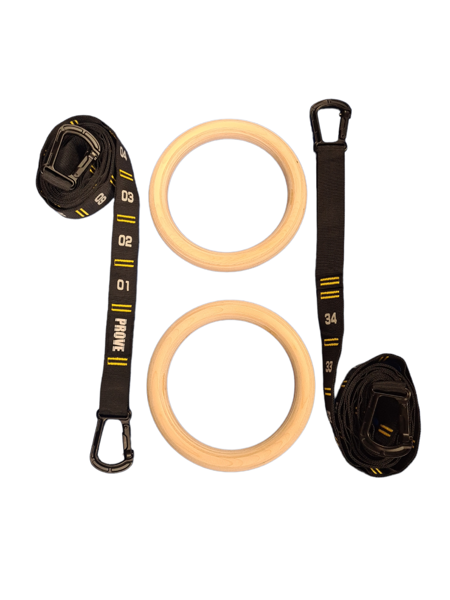 Komplektā ietilpst 2 vingrošanas riņķi un stiprinājuma jostas |