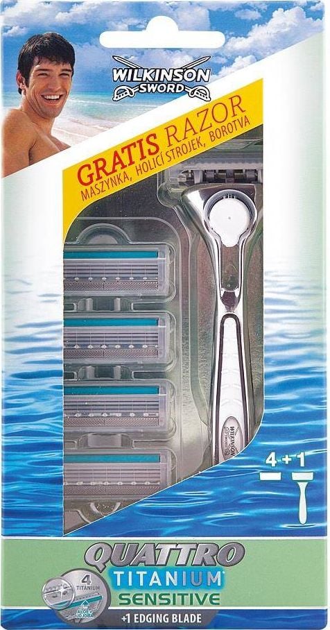 Wilkinson Quattro Titanium Sensitive maszynka do golenia z wymiennymi ostrzami 1szt + wkady 4szt