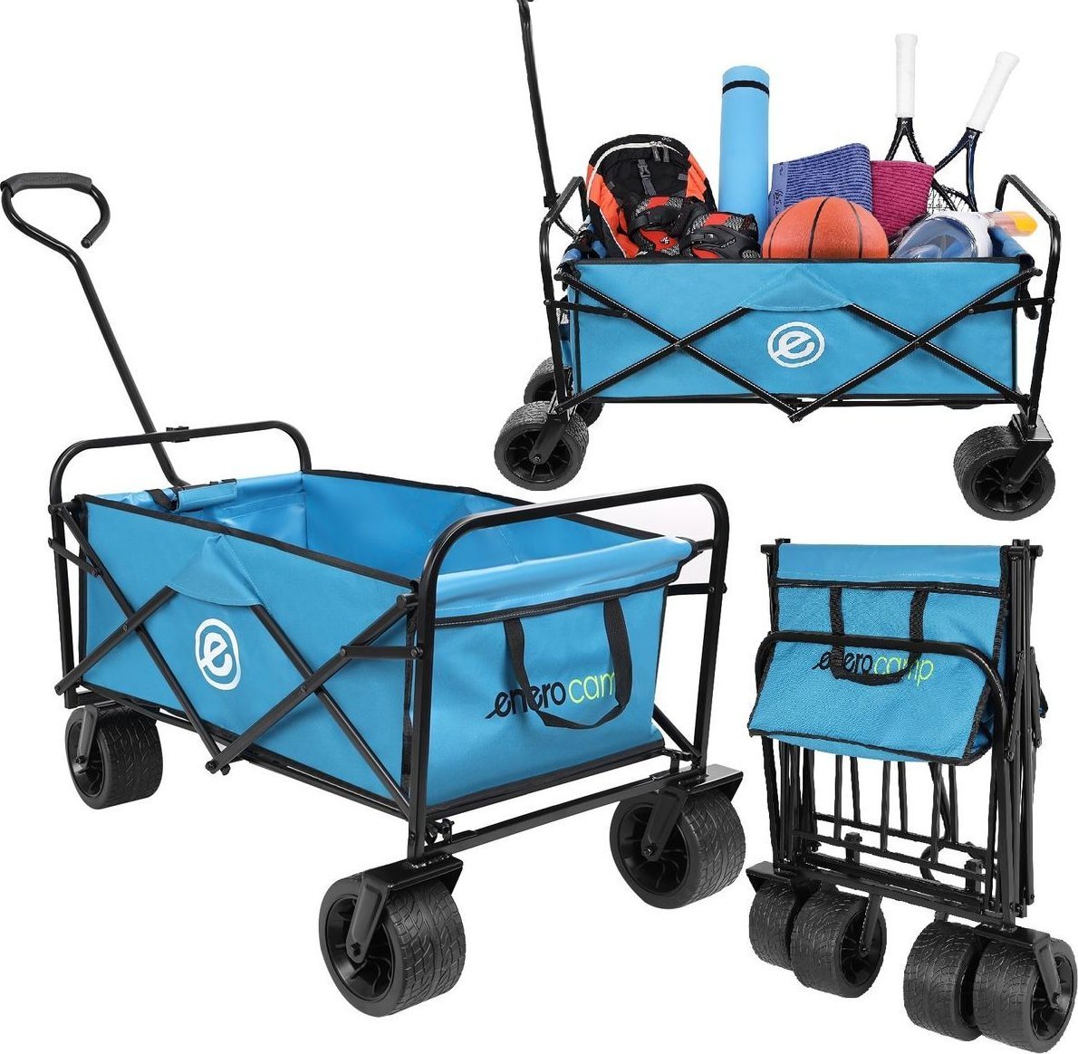 WÓZEK TURYSTYCZNO PLAOWY DELUXE SKADANY 66x48x90CM Z UCHWYTEM NIEBIESKI