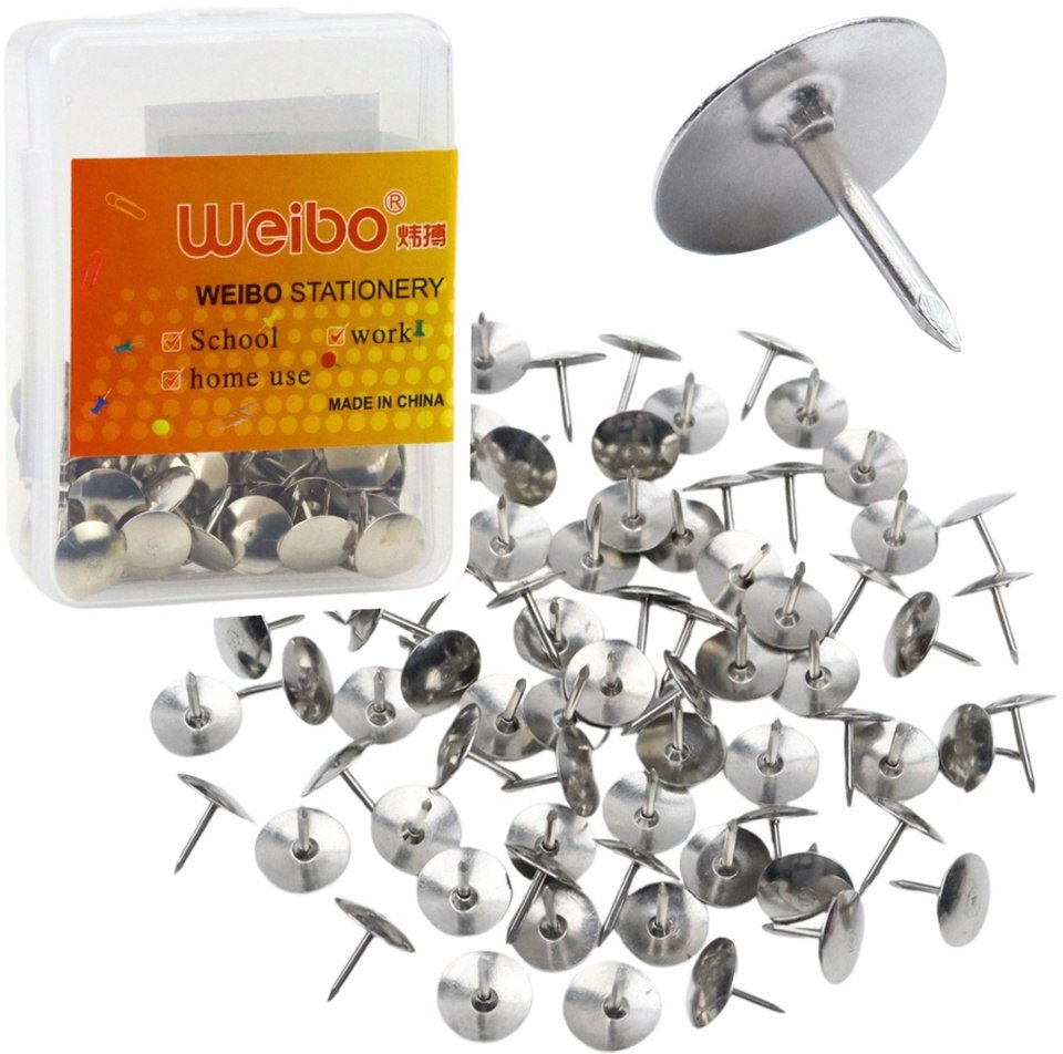 Zestaw Pinezki Z Pask Gówk Biurowe Szkolne Srebrne 40szt. LEAN