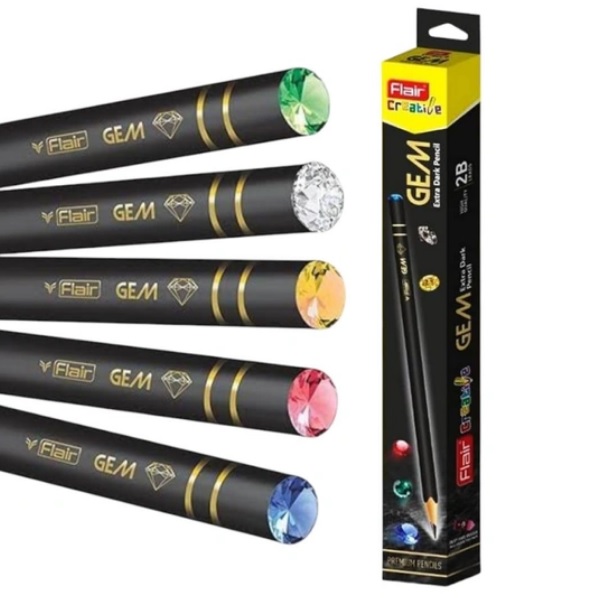 | The GEM 2B unsharpened pencil with a decorative "diamond" Flair is a stylish and practical writing tool. The 2B lead provides smooth, dark lines, making it suitable for writing, sketching, and everyday use. Its unique design with a decorative stone adds a touch of elegance, making it not only functional but also visually appealing. |