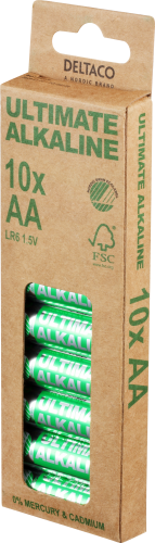 AA LR6 baterijas 1.5V Deltaco Ultimate Alkaline iepakojumā 10 gb.