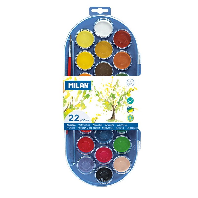 | Milan akvareļu krāsu komplekts ar 22 toņiem un otiņu ir ērts risinājums radošām nodarbēm. Spilgti un piesātināti toņi ļauj radīt izteiksmīgus darbus, bet kompaktais iepakojums ir piemērots lietošanai mājās, skolā vai ceļā. |