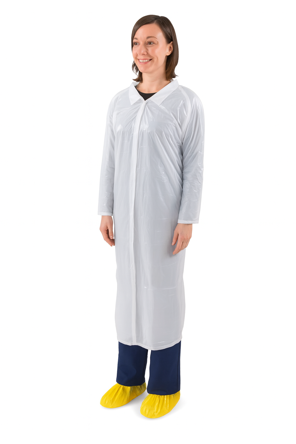 | The SHIELD disposable visitor gown is made from lightweight yet durable polyethylene (PE). Size M offers a comfortable fit and provides basic protection for clothing against moisture and dirt.