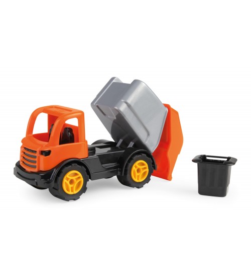 Мусорная машина из прочного АБС-пластика с качественными прорезиненными колесами. Отдельный мусорный бак. Ось из оцинкованной стали толщиной 4 мм. Размер 14 см.