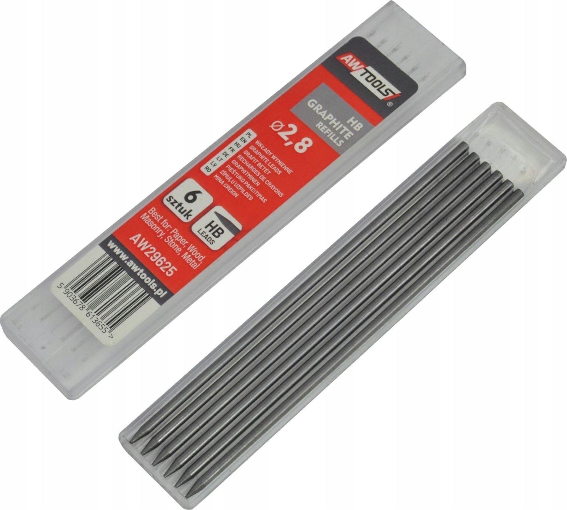 AWTools AW WKADY WYMIENNE GRAFITOWE CZARNE HB DO OÓWKA AUTOMATYCZNEGO kpl. 6szt.