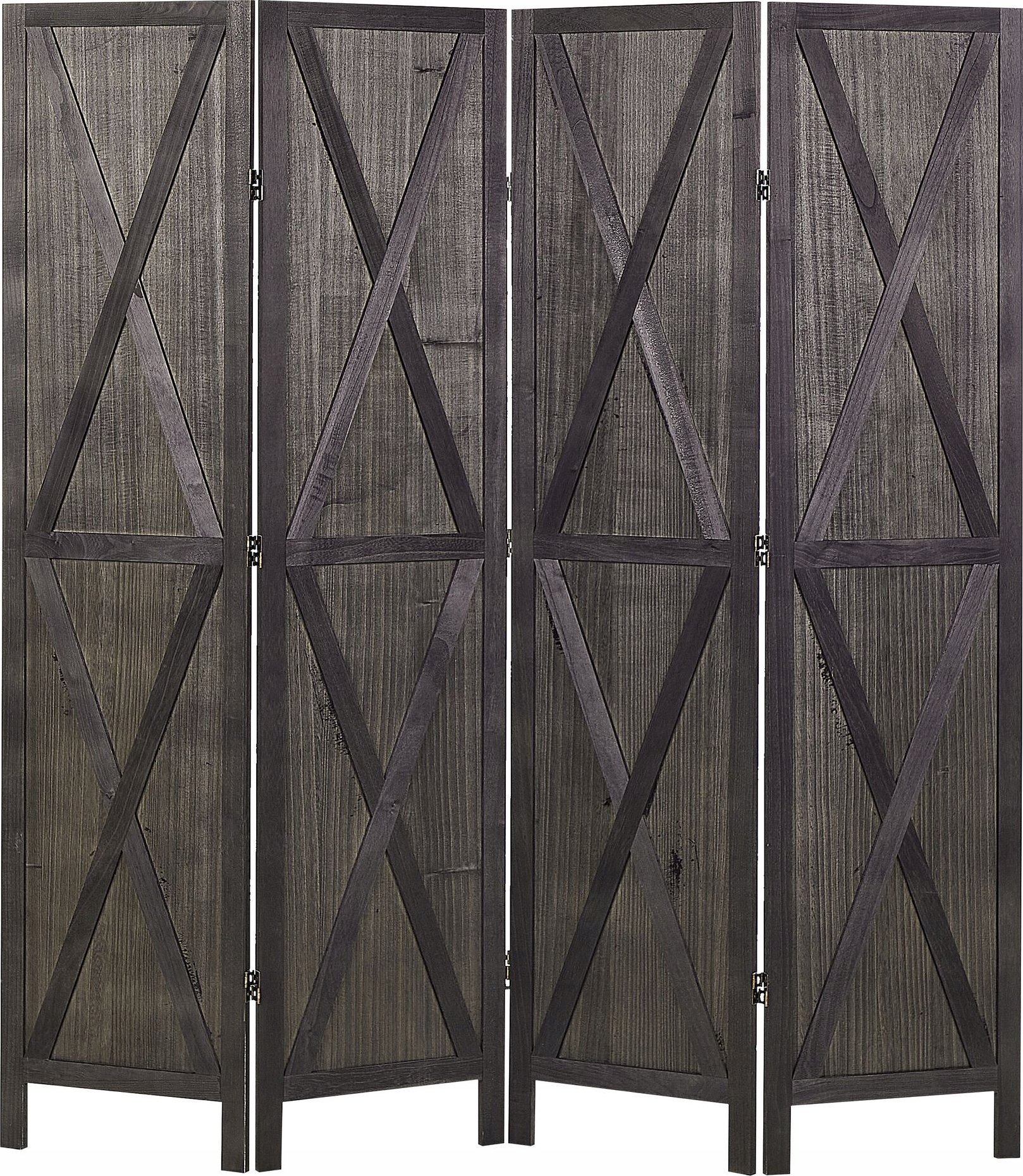Beliani 4-panelowy skadany parawan pokojowy drewniany 170 x 163 cm ciemnobrzowy RIDANNA