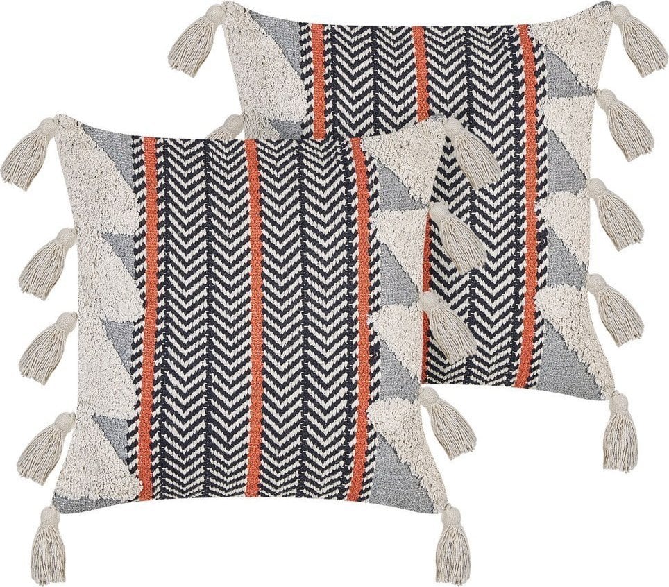 Beliani Baweniana poduszka z frdzlami 45 x 45 cm biao-szara BRAHEA