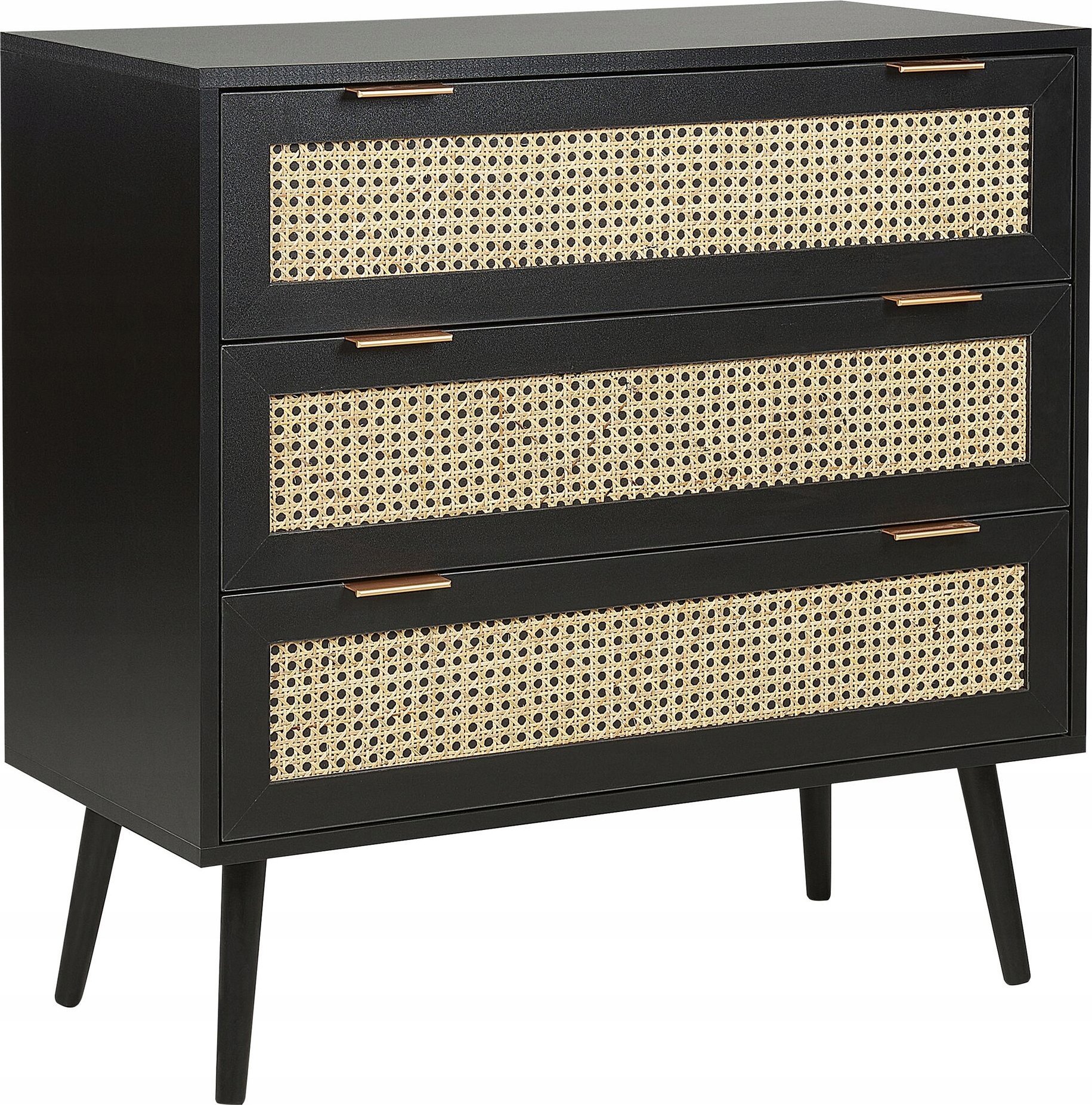 Beliani Komoda 3 szuflady fronty rattanowe czarna OPOCO