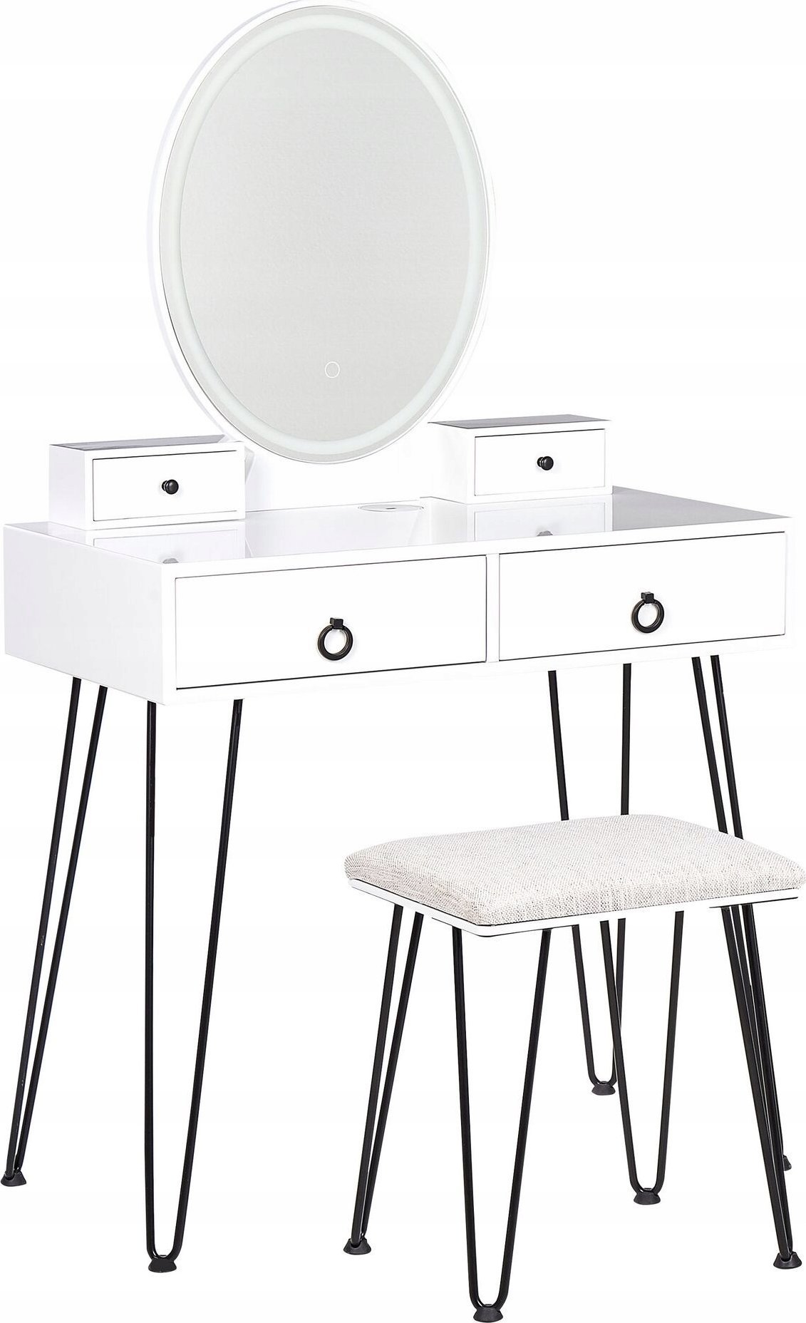 Beliani Toaletka 4 szuflady lustro LED ze stokiem biao-czarna SOYE