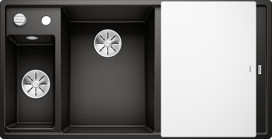 Zlewozmywak Blanco Axia III 6 S Silgranit czarny z korkiem automatycznym InFino, deska szklana, odsczarka stalowa, komora z lewej (525848)