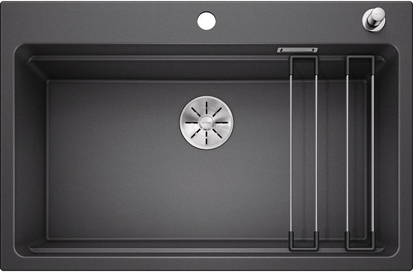 Zlewozmywak Blanco Etagon 8 Silgranit antracyt z korkiem automatycznym InFino, szyny (525177)