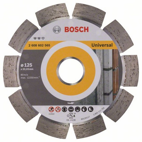Bosch 2 608 602 565. Blade diameter: 12.5 cm, Bore size: 2.22 cm, Cutting width: 2.2 mm. Quantity per pack: 1 pc(s)