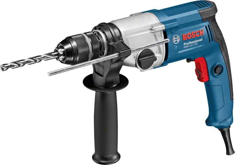 Bosch GBM 13-2 RE. Chuck type: Key. Idle speed (max): 1750 RPM, Drilling diameter in wood (max): 3.2 cm, Drilling diameter in steel (max): 1.3 cm. Power source: AC, Input power: 750 W, Output power: 353 W. Weight: 2.4 kg