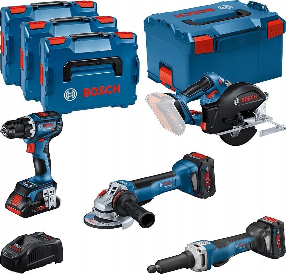 BOSCH.COMBO SET 18V (GSR 18V-90C +GWS 18V-15 PSC +GKM 18V-50 +GGS 18V-23 PLC) 1xPC4.0Ah 2xPC5.5Ah ...
