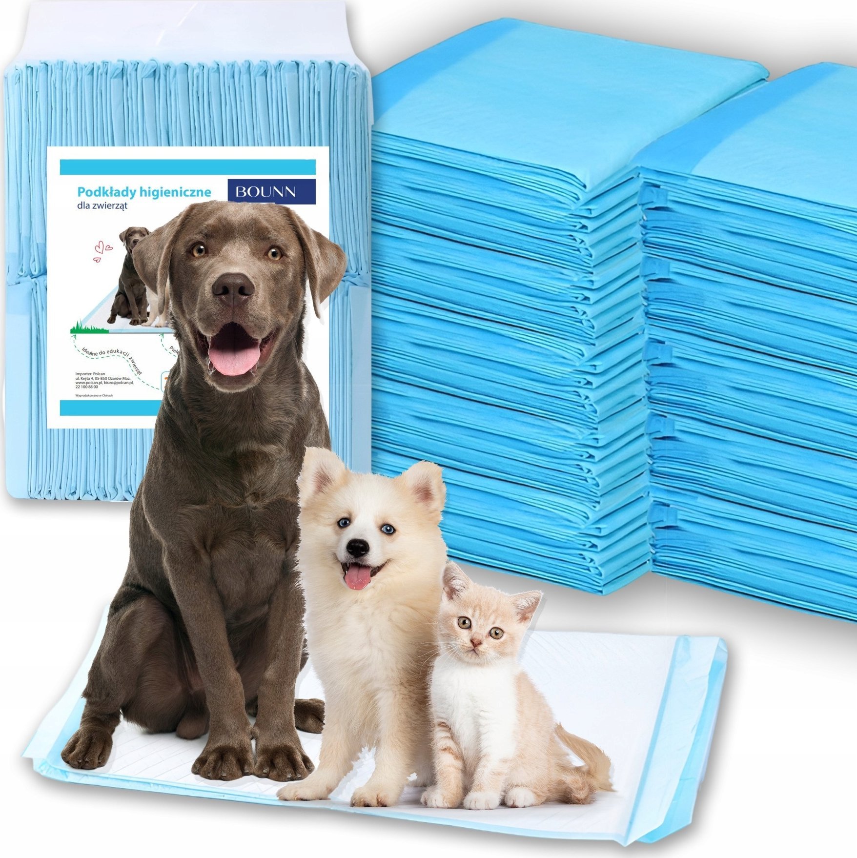 Bounn PodkÅad higieniczny dla zwierzÄ t 60x60 cm chÅonnoÅÄ do 500 ml | 100 sztuk