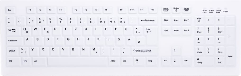 CHERRY AK-C8100F-FUS-W/GE. Tastatūras veids: Taisni. Savienojamības tehnoloģija: Bezvadu, Ierīces interfeiss: RF Bezvadu, Klaviatūras taustiņu slēdzis: Membrānas klaviatūra, Tastatūras izkārtojums: QWERTZ, Tastatūras taustiņu skaits: 105, Ieteicamais pielietojums: Medicīnisks. Produkta krāsa: Balts