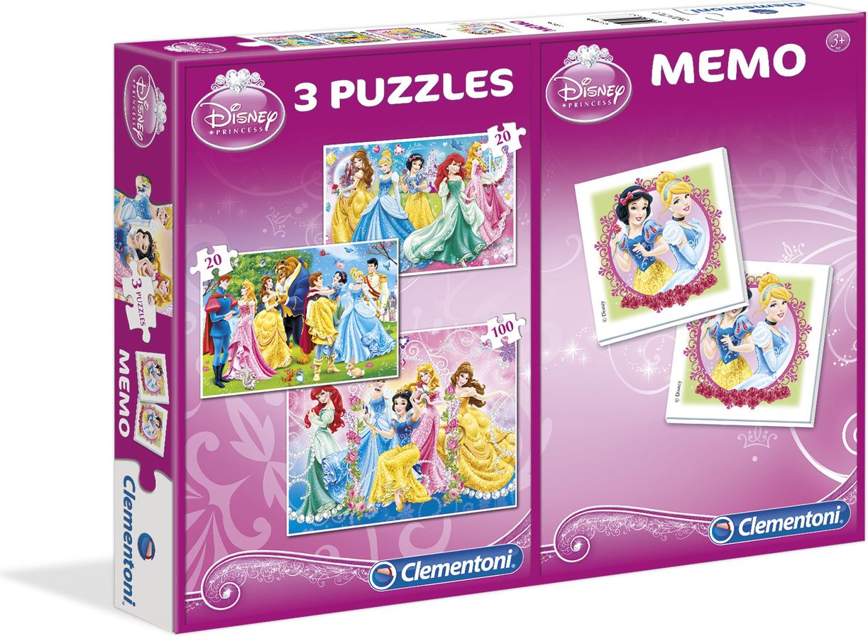 Clementoni Puzzle 3w1 2x20 + 100 - Memo Ksiniczki (07806)