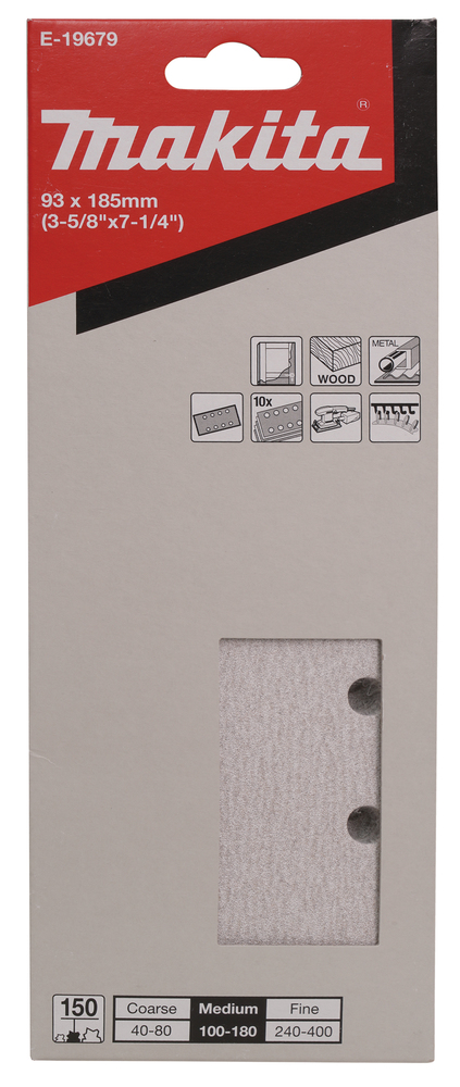 Daudzfunkcionālajām orbitālajām slīpmašīnām paredzētā smilšpapīra loksnes Makita E-19679; 93x185 mm; P150; 10 gab.