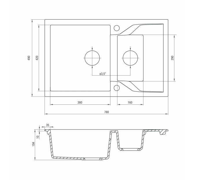 Zlewozmywak Deante 1,5-komorowy Andante z ociekaczem 78x49cm grafit (ZQN 2513)