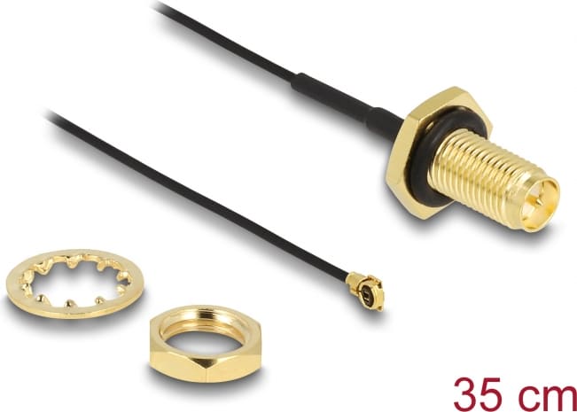 Delock Antenna Cable RP-SMA jack bulkhead to I-PEX Inc., MHF® I plug 1.13 35 cm thread length 10 mm splash proof
