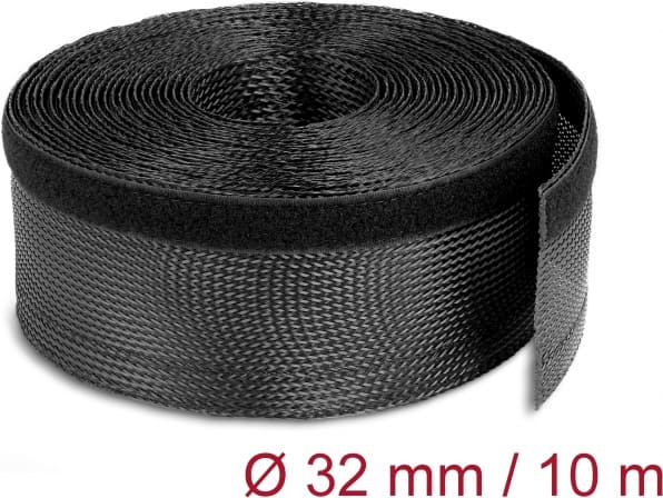 Delock Braided Sleeving with Hook-and-Loop Fastener 10 m x 32 mm black