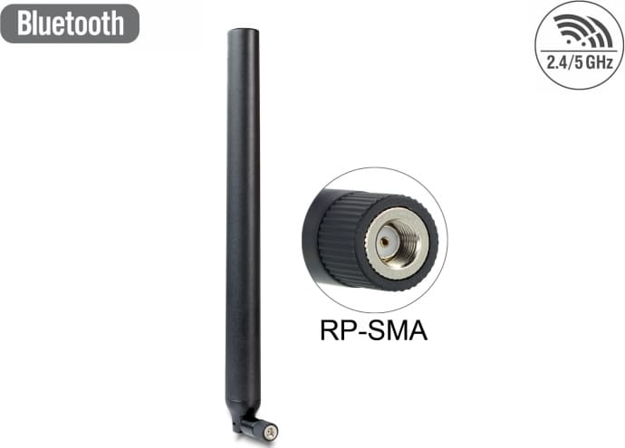 Delock WLAN 802.11 ac/a/h/b/g/n Antenna RP-SMA plug 5.5 - 9 dBi omnidirectional with tilt joint black