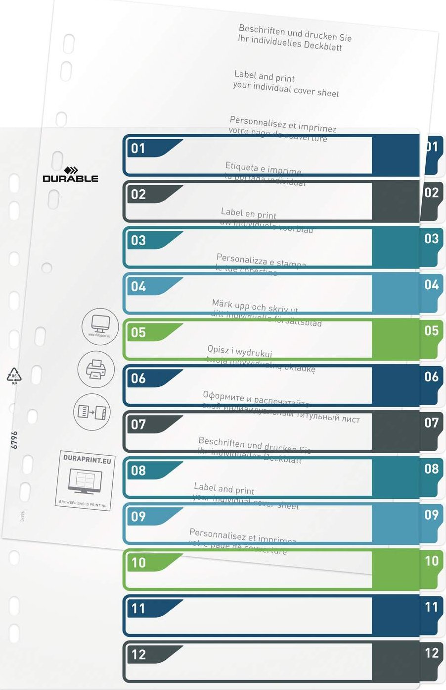 Durable DURABLE Register A4 + 12tlg. 1-12 farbige Taben+trans. Form.