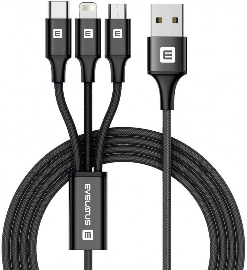 Evelatus - Evelatus Data cable 3in1 (Ligtning, Type-C, Micro USB ) LTM01 Black