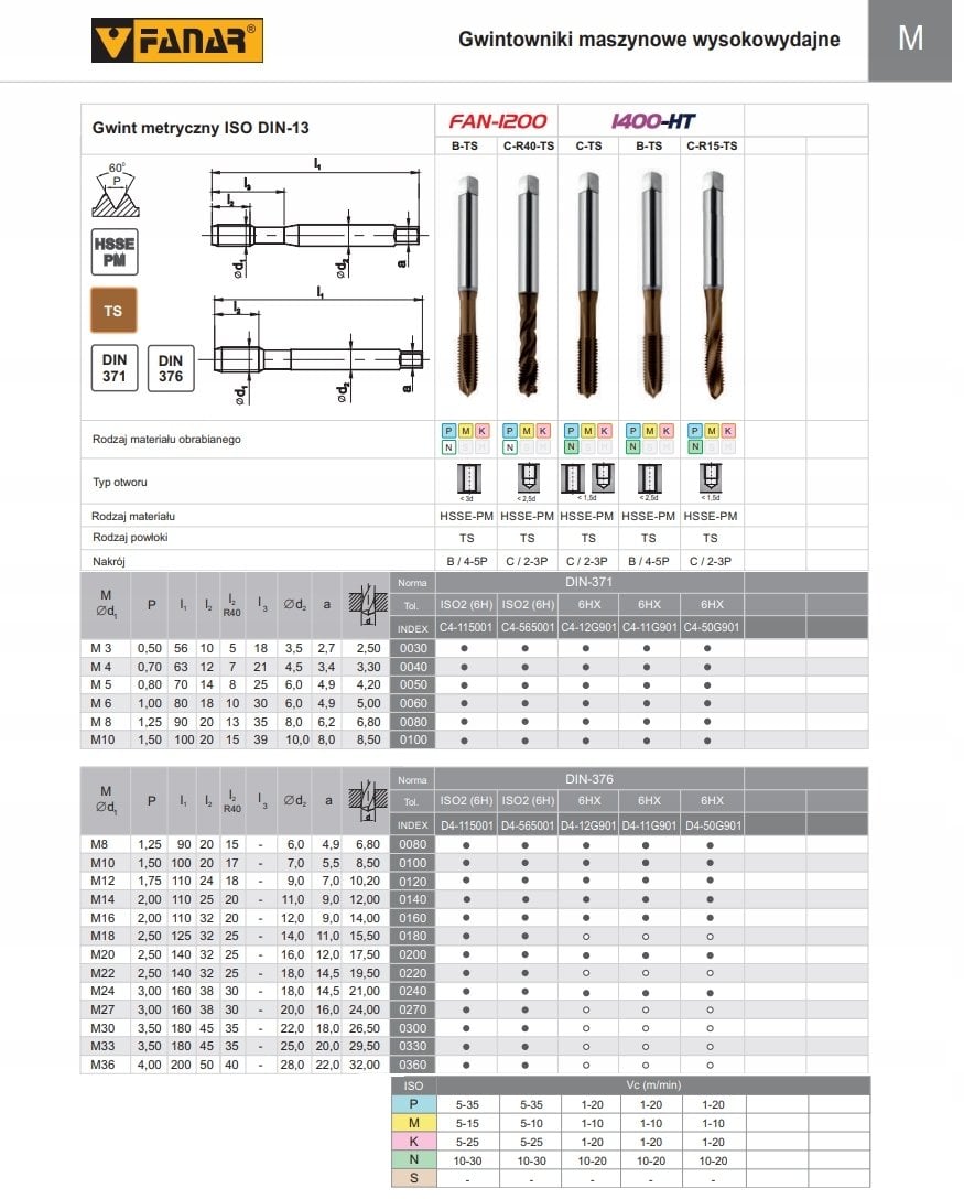 Fanar GWINTOWNIK M 8 DIN-376B (6H) HSSE-PM TICN