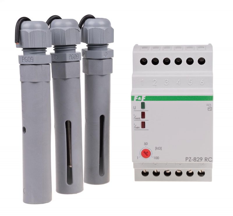 F&F Przekanik kontroli poziomu cieczy 16A 2P 1-100kOhm 3 sondy (PZ-829 RC)