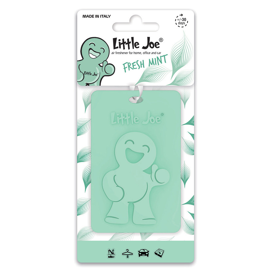 | Little Joe auto gaisa atsvaidzinātājs Fresh Mint ir estētiski veidots piparmētru aromāta piekariņš, kas ne tikai piešķir salonam atsvaidzinošu smaržu, bet arī vizuālu akcentu. Izgatavots Itālijā no kvalitatīvas gumijas, tas ir viegli uzkarināms uz atpakaļskata spoguļa ar komplektā esošo stiprinājumu. Atsvaidzinātājs darbojas līdz 45 dienām, izdalot maigu un neuzbāzīgu piparmētru aromātu. |