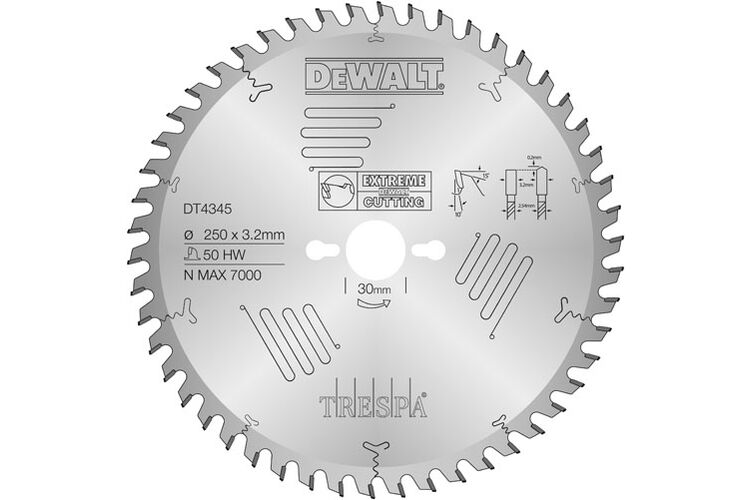 Griešanas disks kokam DeWalt DT4345; 250x30 mm; 50T